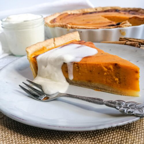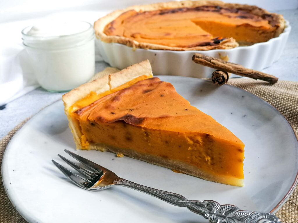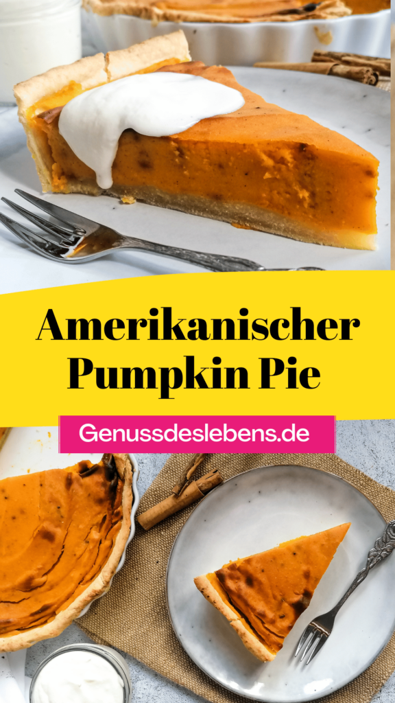 Der original amerikanische Pumpkin Pie (Kürbiskuchen) ist köstlich und nahrhaft. Dieser Kuchen ist ein traditioneller Nachtisch der amerikanischen Küche. Besonders oft wird er zu Halloween, Thanksgiving und Weihnachten serviert.