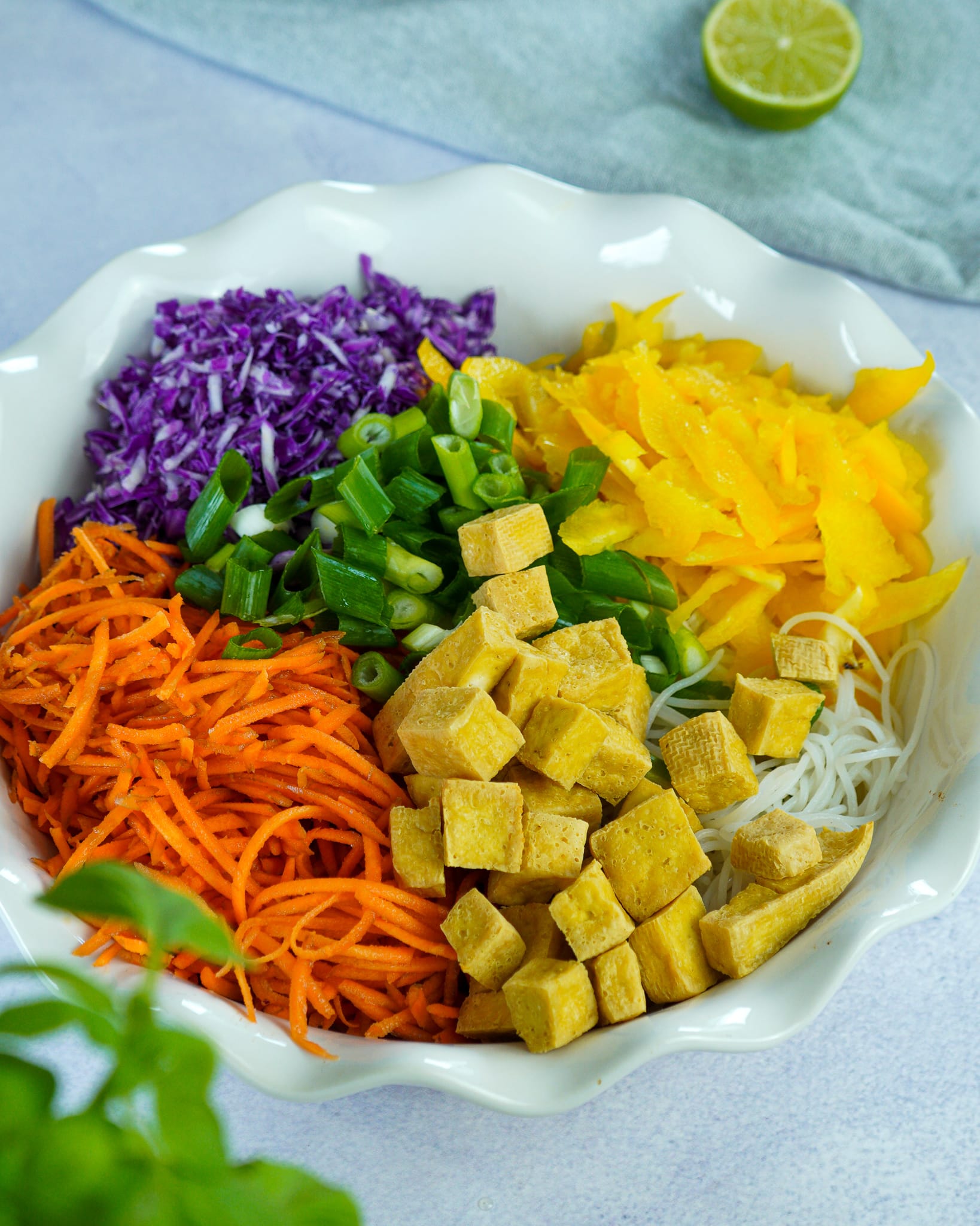 - Tofu: Sorgt für Protein und eine gute Sättigung. Du kannst auch eine andere Proteinquelle deiner Wahl verwenden. z.B. vegetarisches Hähnchen.