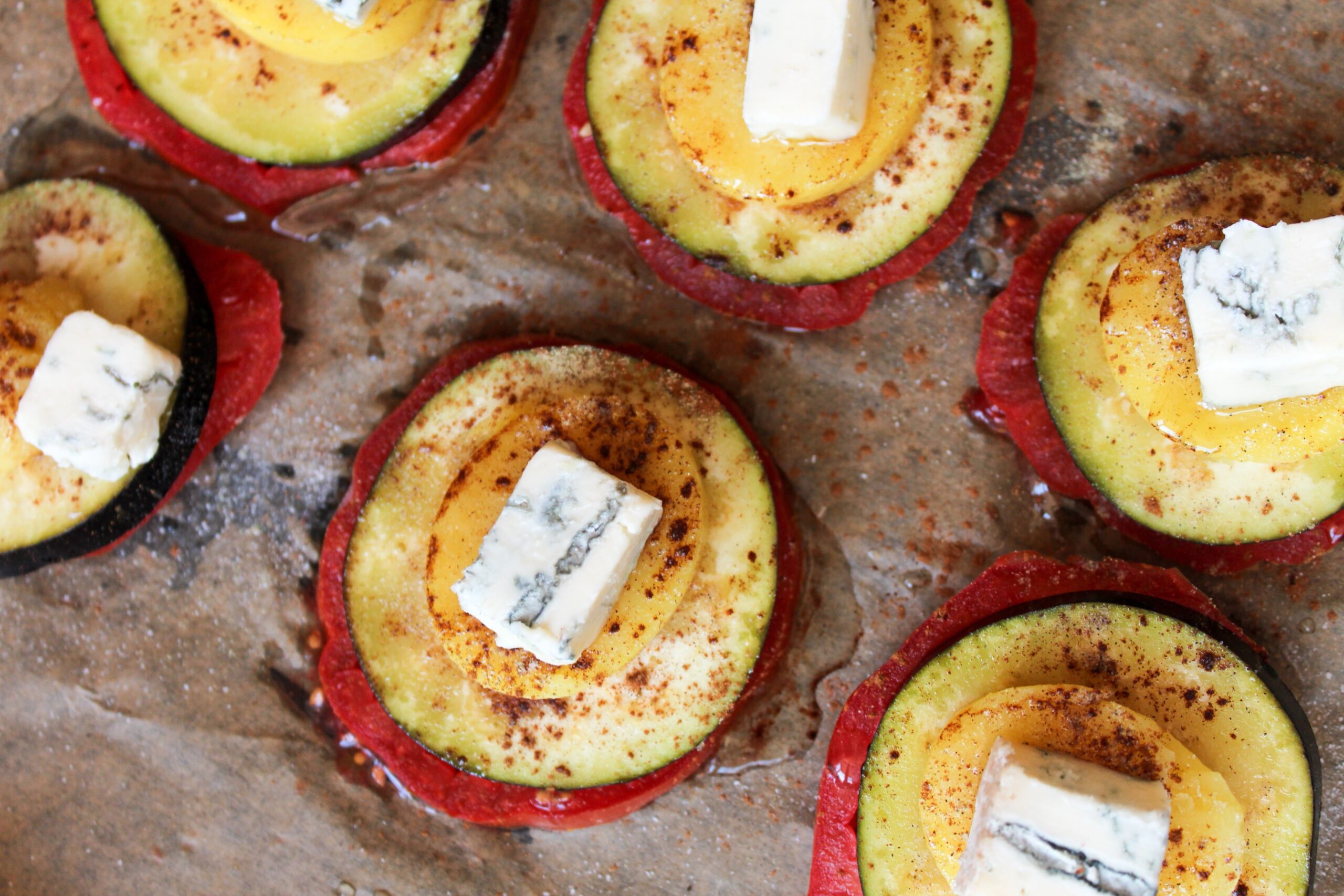 Dieses dekorativ gebackene Menu sieht nicht nur schön aus, sondern ist nahrhaft und lecker. Lagen von Tomaten, Aubergine und Kartoffeln getoppt mit Gorgonzola und ergeben ein genussvolles Aroma und schmeckt dank dem italienischen Schimmelkäse leicht rezent. Die runden Schiffchen ergeben ein idealer Snack für ein Buffet, oder sie eignen sich genauso als Haupt- oder Vorspeise. Die roten Tomatenscheiben, grüne Aubergine und die gelblichen Kartoffeln zeichnen einen hübschen Farbtupfer mit einem kleinen Würfel Käse als Hut. Dieses Rezept ist sehr einfach und die Schiffchen sind schnell und ohne große Probleme geformt. Das Beste daran ist, dass es trotzdem sehr speziell aussieht, obwohl es so einfach ist!