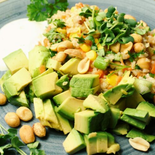 Dieser super leckere Bulgur Avocado Salat ist genau das Richtige, wenn es schnell gehen muss. Die cremige Avocado, die knackigen Nüsse, die weichen Kichererbsen und der kernige Bulgur machen diesen Salat zu einem wahren Geschmackserlebnis. Dir läuft das Wasser im Mund zusammen? Dann probiere ihn unbedingt aus.
