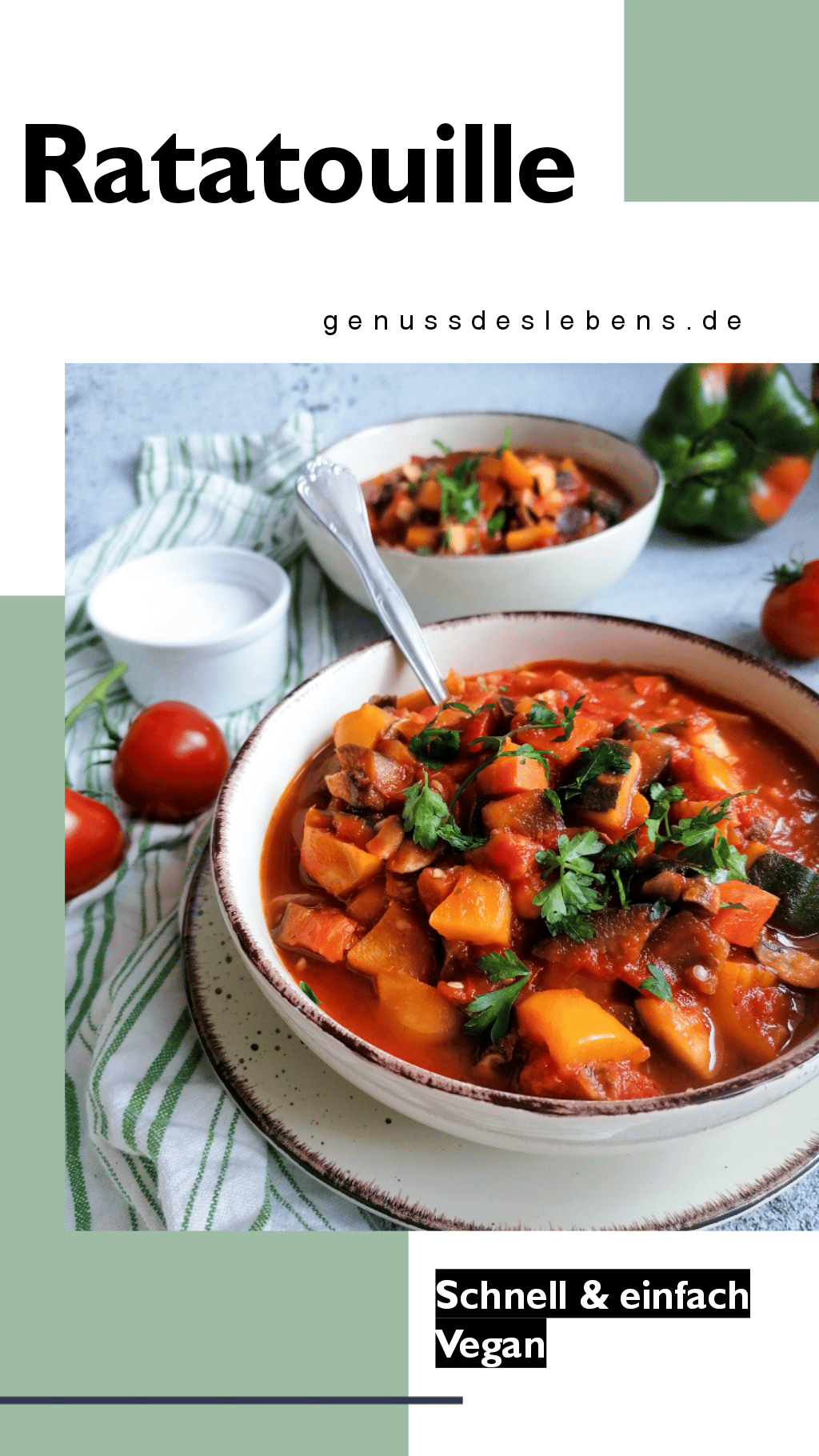 Mmmhh… mehr kann man zu diesem leckeren Ratatouille mit Auberginen, Paprika und Zucchini nicht sagen. Dieses leckere Rezept besteht aus leckeren, frischen Zutaten die noch dazu alle regional erhältlich sind. Als Beilage eignen sich Dinkelnudeln oder Reis. Falls mal Reste übrig bleiben eignet sich dieses Gericht auch super zum mitnehmen 🙂