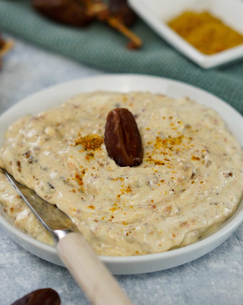 Dieser superleckere Dip aus Datteln und Frischkäse ist perfekt für jede Rohkostplatte oder auch zu einem leckerem Grillteller. Da er super einfach und schnell ganz frisch hergestellt werden kann, liebe ich ihn als Begleiter für meine spontanen Snacks zwischendurch. Ich habe den Klassiker etwas angepasst und für dich kalorienärmer zubereitet.