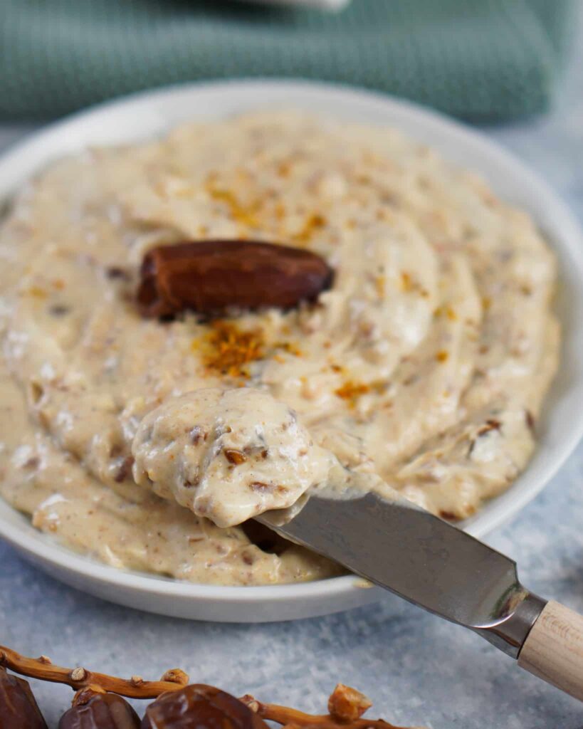 Probiere es als Dip für deine Rohkoststicks. Auch als Dip auf deinem Grillteller macht es sich wunderbar. Was ich auch gerne mag ist ein frisches kruspriges Baguette mit diesem köstlichen Datteldip zu bestreichen. Probiere es einfach aus. Der Dip ist nämlich sehr vielseitig verwendbar.