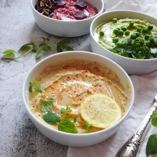 Hier stelle ich drei verschiedene Arten von Hummus vor. Hummus ist ein cremiger Dip, der sich für allerlei eignet. Es passt von BBQ, zu verschiedenen Hauptgerichten bis zu besonders leckeren Brotaufstriche für den Sonntagmorgen Bruch.