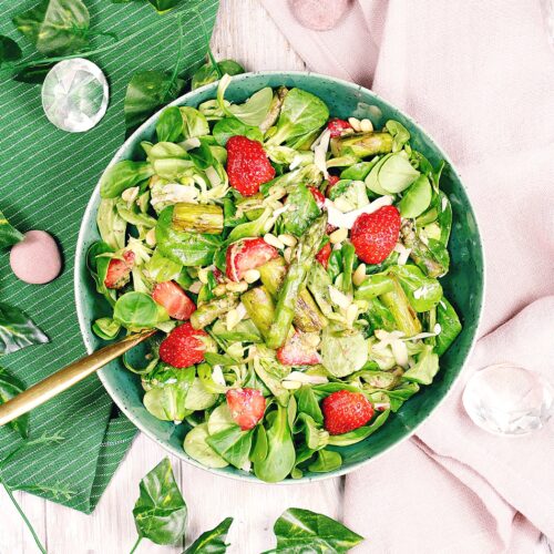 - Erdbeeren und Spargel: Beide haben ihre Erntezeit im Spätfrühling und bilden das Topping unseres leckeren Salates.