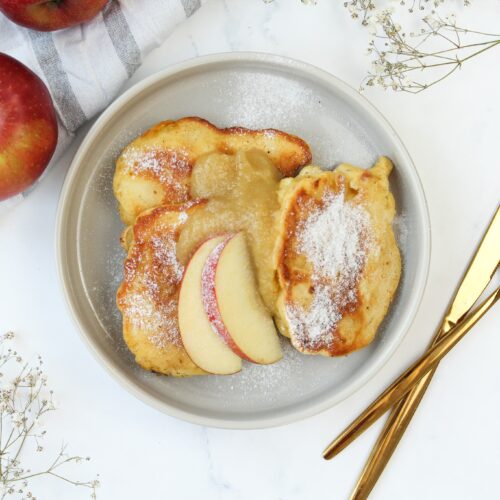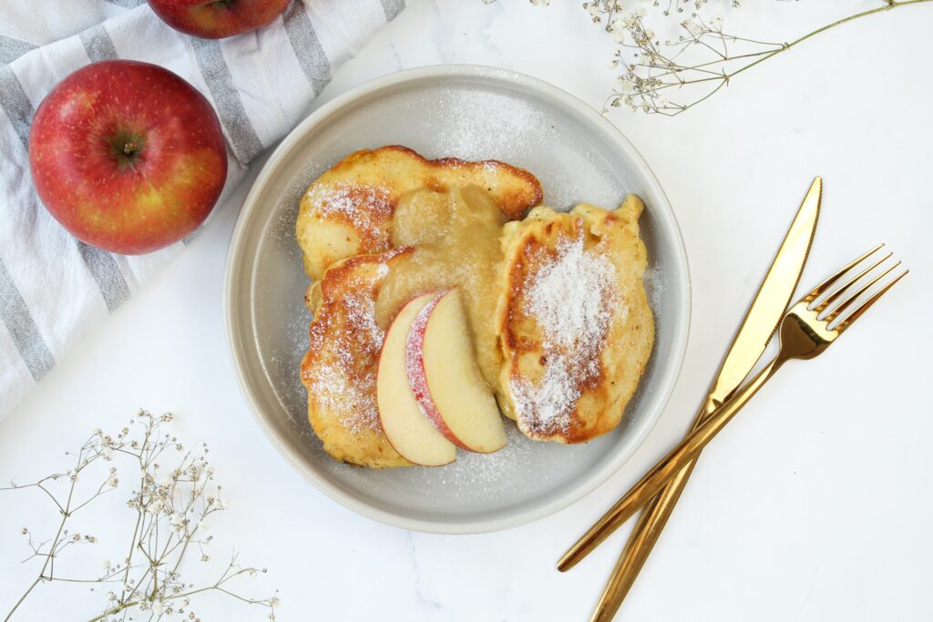 - Mit Apfelmark (zuckerfrei) und Puder Erythrit servieren.