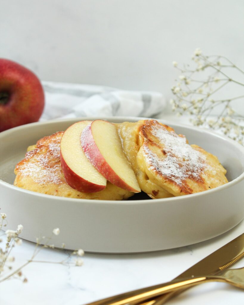 Gesunde Apfelküchle sind kein Ding der Unmöglichkeit, dafür sind meine fluffigen Apfelküchle ohne Zucker der beste Beweis. In klassischen Apfelpuffer Rezepten spielt Zucker natürlich eine große Rolle, aber ich zeige dir, dass die Apfelküchle auch ohne Zucker super lecker und schön süß sein können. Dafür solltest du einfach nur darauf achten, eine eher süße Apfelsorte für die Apfelküchle zu nehmen und wenn du es gern besonders süß magst, kannst du die leckere Nascherei mit Vanilleskyr noch süßer machen.