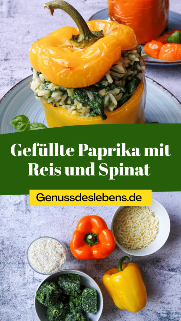 Gefüllte Paprika sind ein Klassiker in der deutschen Küche. Ähnlich wie gefüllte Tomaten sind sie unglaublich variabel in ihrer Zubereitung. Man kann Paprika einfach mit allem füllen was der Vorratsschrank so hergibt. In diesem Fall habe ich mich für eine Füllung aus Reis mit Spinat und Käse entschieden. Das Rezept koche ich schon seit meiner Kindheit regelmäßig, es ist so lecker – ich liebe dieses Gericht! Die Besonderheit ist, dass beim Überbacken im Ofen die Paprika ihren ganzen Geschmack an den Reis abgibt, das gibt eine saftige und sehr schmackhafte Füllung. Ein tolles Rezept für die ganze Familie.