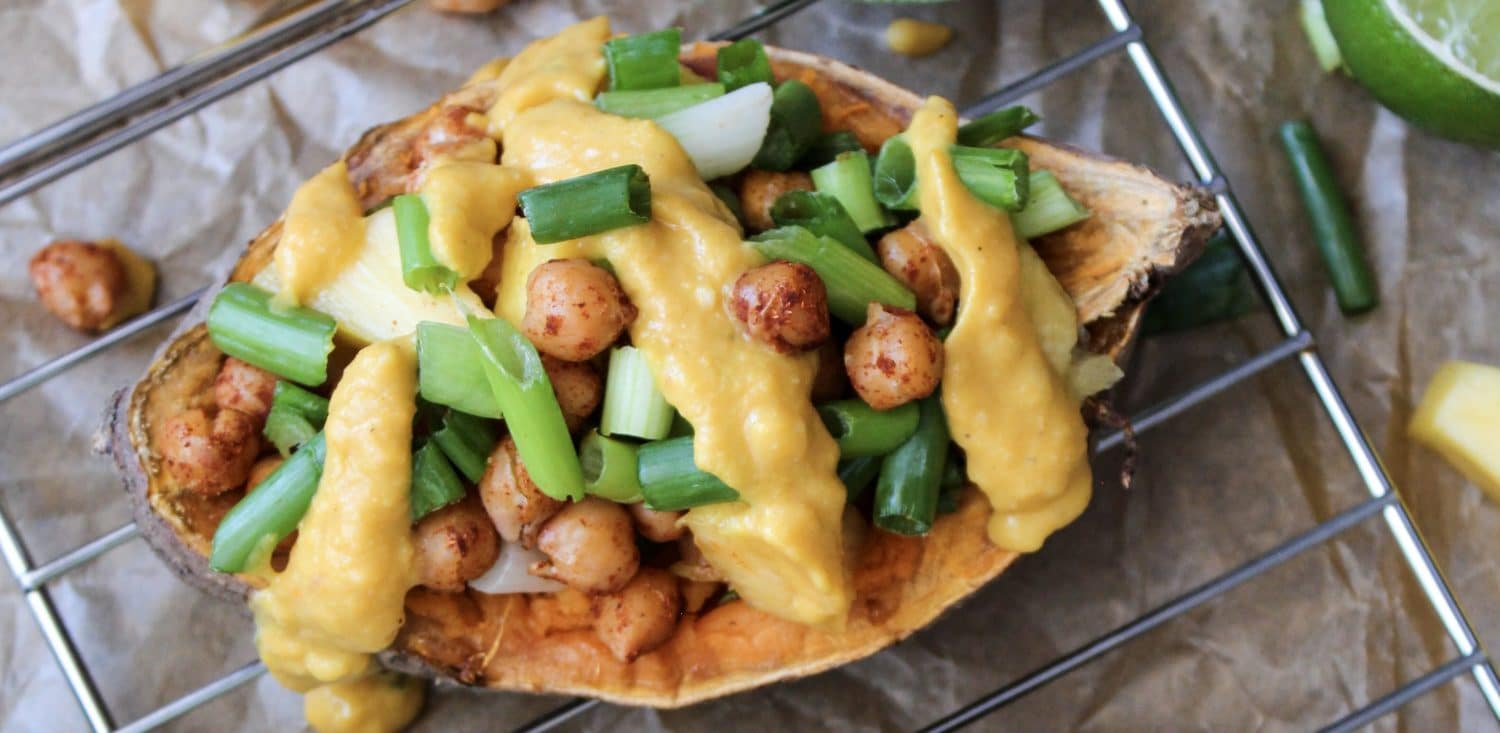 Warum du dieses Rezept aus gefüllten Süßkartoffeln mit Kichererbsen, Ananas und Frühlingszwiebeln lieben wirst