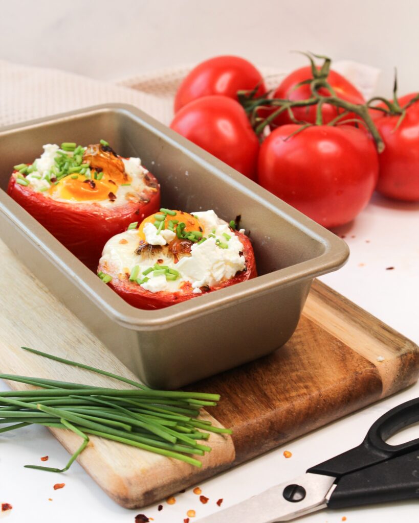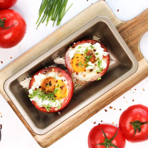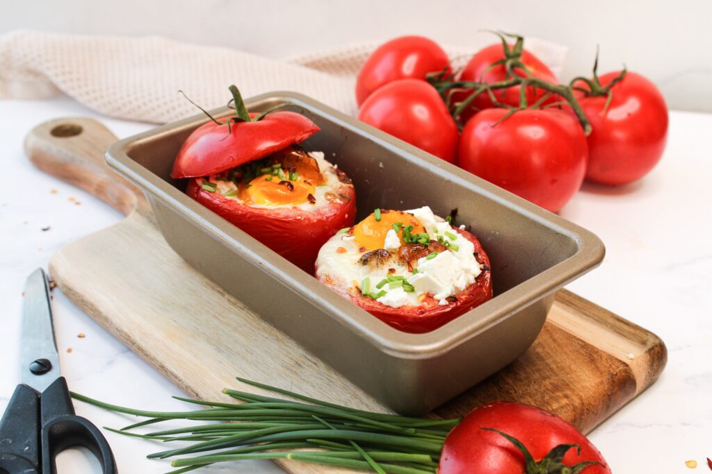 Lust auf ein leichtes und leckeres Sommergericht? Dann probier’ doch mal diese gefüllten Tomaten mit Ei und Käse. Dieses Rezept für gefüllte Tomaten ist vegetarisch und weil diese gefüllten Tomaten ohne Reis zubereitet werden, noch dazu ein tolles Low Carb-Rezept. Wenn du gefüllte Paprika magst aber gerne mal etwas neues ausprobieren möchtest, dann werden dir diese gefüllten Tomaten mit Feta und Ei garantiert super gefallen. Sie bestehen aus ganz wenigen Zutaten und du kannst sie im Handumdrehen zubereiten. Damit sind diese gefüllten Tomaten aus dem Backofen das perfekte Low Carb-Abendessen.