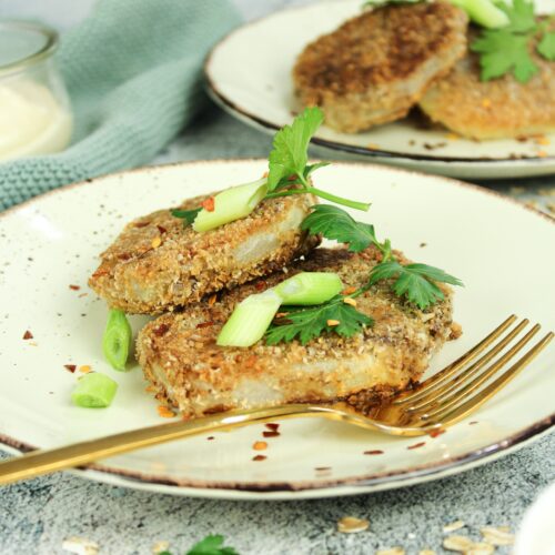 Kohlrabischnitzel ohne Ei – Leinsamen als Ei Ersatz