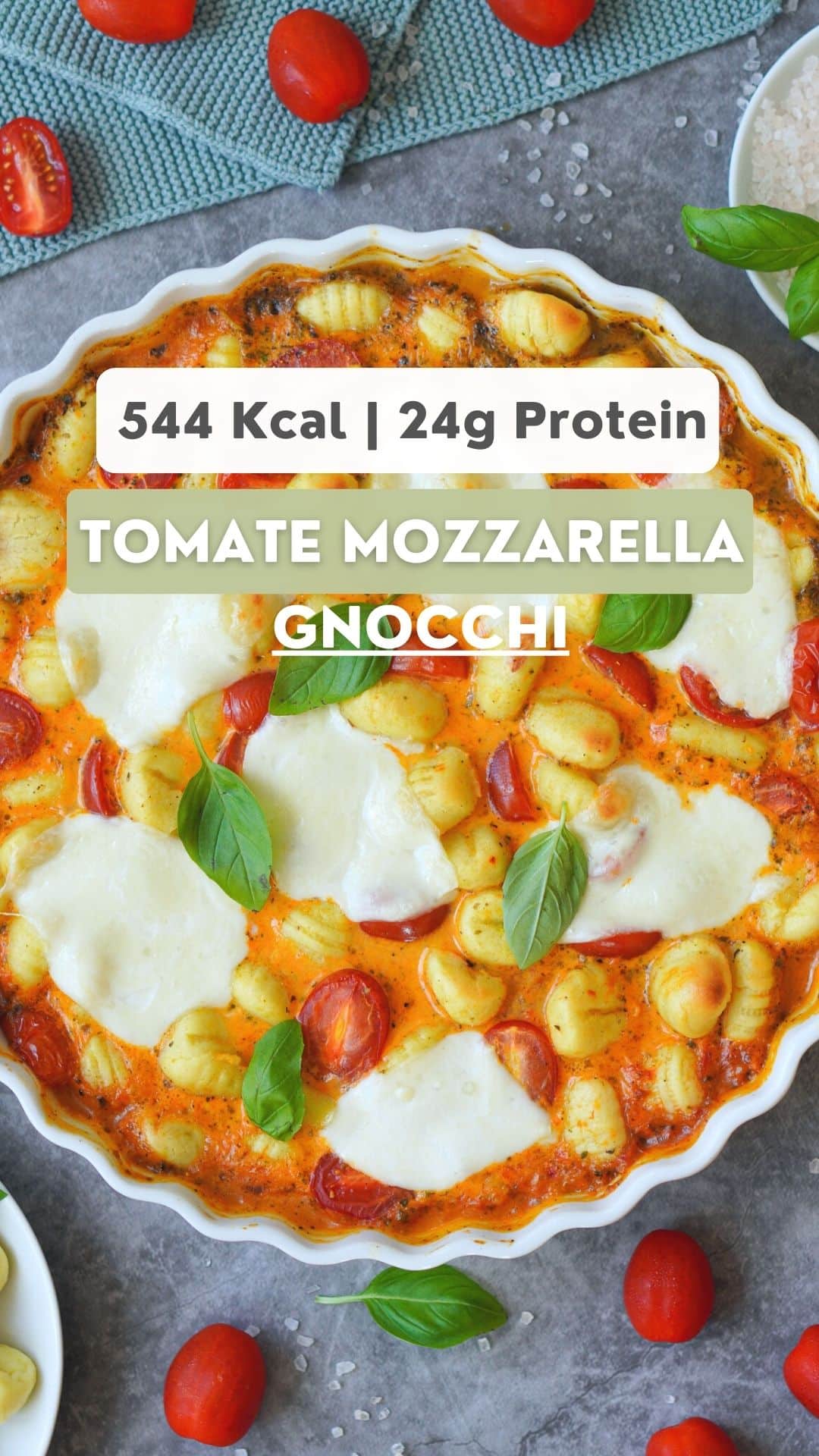 Das komplette Rezept für diesen Gnocchi Auflauf hat 544 Kalorien und 24,1g Eiweiß pro Portion .
