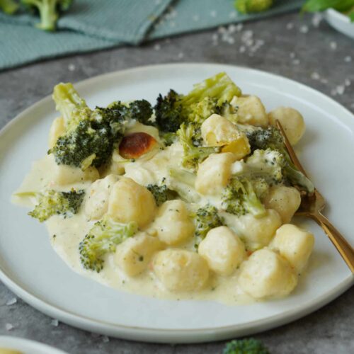 Dieser cremig fluffige Gnocchi Brokkoli Auflauf ist ganz einfach zuzubereiten und super lecker. Ich mache immer gleich eine große Auflaufform, denn er schmeckt auch wunderbar am nächsten Tag in der Mittagspause. Die weichen Gnocchi und der knackige frische Brokkoli in der leckeren Frischkäsesoße sind einfach unwiderstehlich. Und noch dazu sehr gesund, ist doch der Brokkoli ein wichtiger Lieferant an Vitaminen und Nährstoffen.