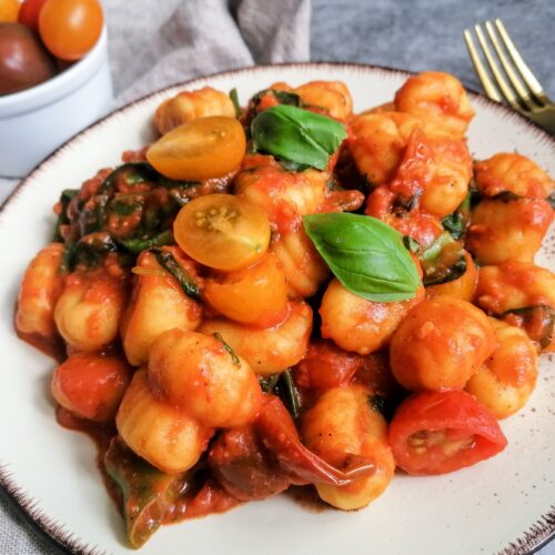 Diese Gnocchi haben eine sehr zarte und glatte Textur, die sie selbst den anspruchsvollsten Gaumen zufriedenstellt. Gnocchi schmecken hervorragend zu jeder Art von Sauce, die euch schmeckt. Auch schmecken Sie hervorragend als Beilage zu Fleisch oder Gemüse, einfach in ein bisschen Butter mit Salbei schwenken – fertig. In diesem Rezept habe ich mich für eine klassische Variante entscheiden – Salsa pomodoro (Tomatensauce). Solltet ihr Lust auf mehr haben, findet ihr hier weitere leckere Rezeptideen mit Gnocchis.