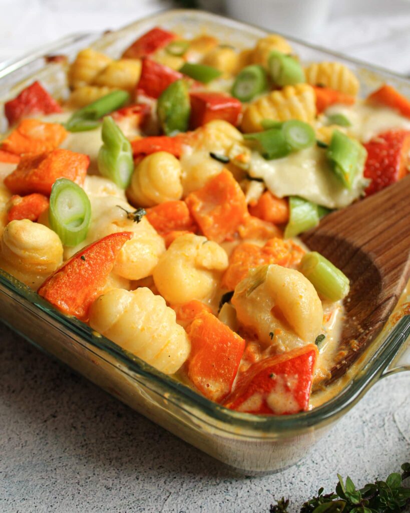 Dieser vegetarische Kürbisauflauf ist etwas ganz besonderes! Die Mischung aus Gnocchi, Kürbis, Sahne und etwas Mozzarella ist ein richtiger Gaumenschmaus. Der herzhafte, wärmende Auflauf passt perfekt in den Herbst und Winter. Der saftige Kürbis-Gnocchi-Auflauf ist leicht zu kochen, lass dich also von der etwas längeren Zubereitungszeit nicht abschrecken!