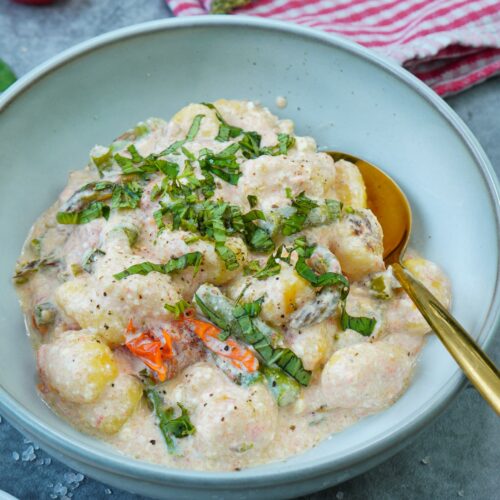Entdecke mein blitzschnelles und gesundes Rezept für Gnocchi mit grünem Spargel, Cherrytomaten und Feta! In nur 35 Minuten zaubern Sie ein köstliches, vegetarisches Gericht, das reich an frischem Gemüse und voller Geschmack ist. Perfekt für eine schnelle, leckere Mahlzeit unter der Woche!