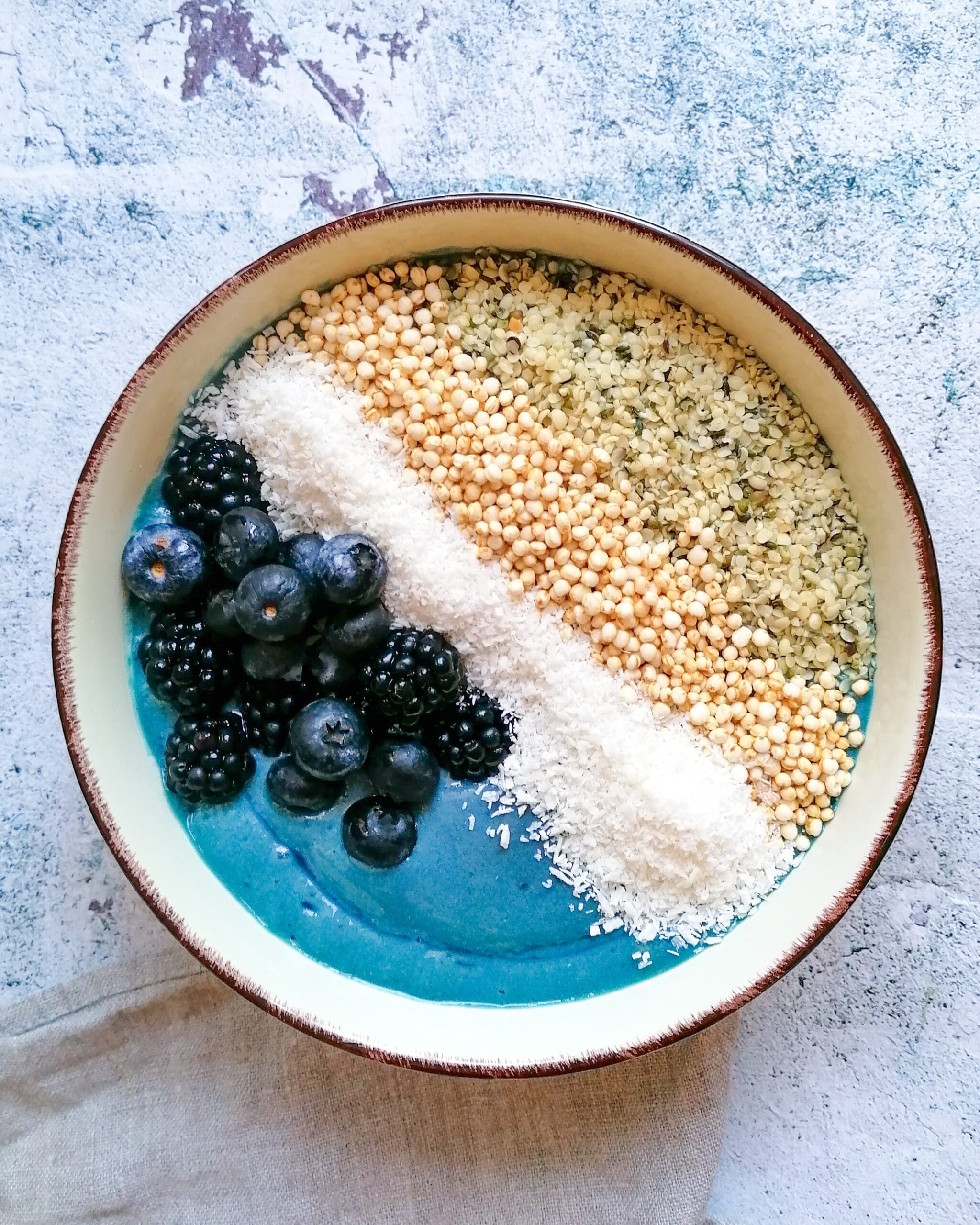 Blaue Smoothiebowl mit Blue Spirulina