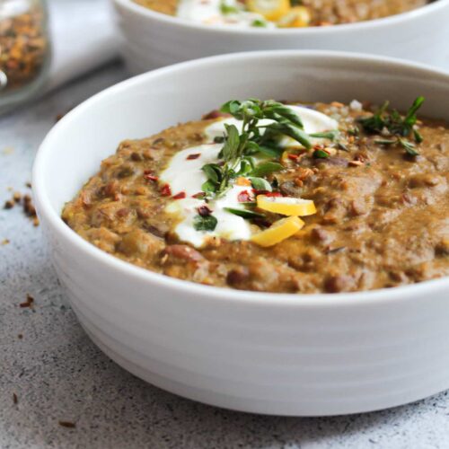 Zum Dal serviere ich meistens etwas griechischen Joghurt, Naanbrot oder Reis. Ihr könnt es aber natürlich auch pur genießen.