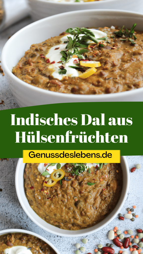Diesmal habe ich jedoch ein Dal aus unterschiedlichen Hülsenfrüchten zubereitet. Hülsenfruchtmischungen gibt es bereits fertig im Supermarkt zu kaufen. Man kann aber natürlich auch beliebige Linsen und Erbsen verwenden.