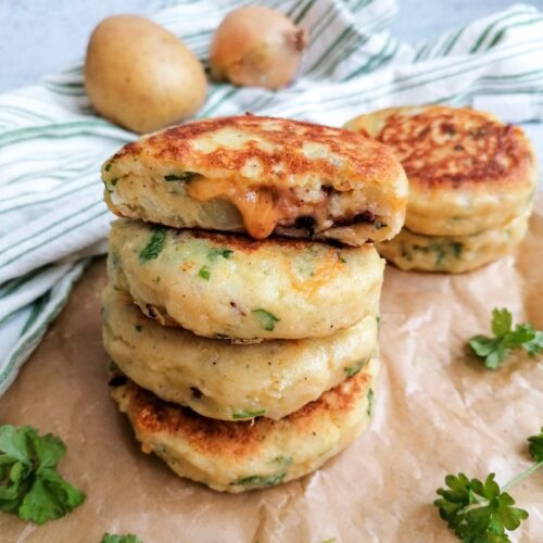 Diese Kartoffel-Küchlein mit Cheddar-Kidneybohnen-Füllung schmecken einfach fantastisch. Man kann sie einfach so essen oder als Beilage für Gemüse und zu Salat verwenden :-).
