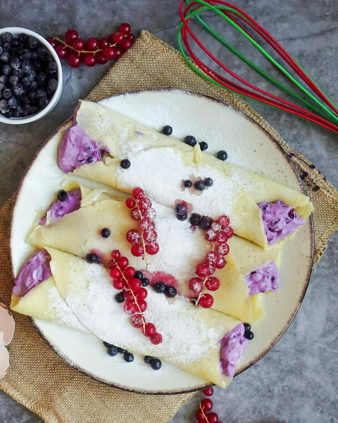 Einfacher Crêpes Teig mit Heidelbeer-Quark