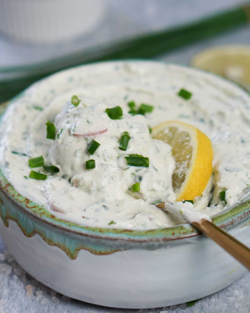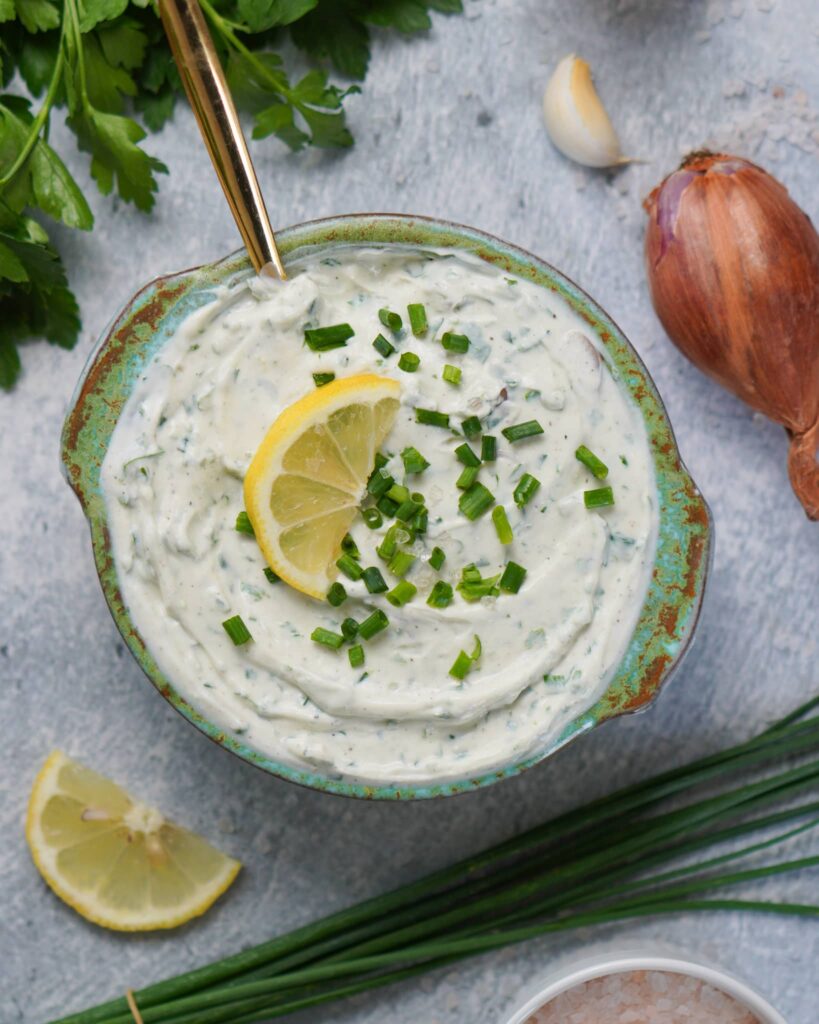 - Fettarmer Joghurt: Dieser macht den Dip etwas cremiger.