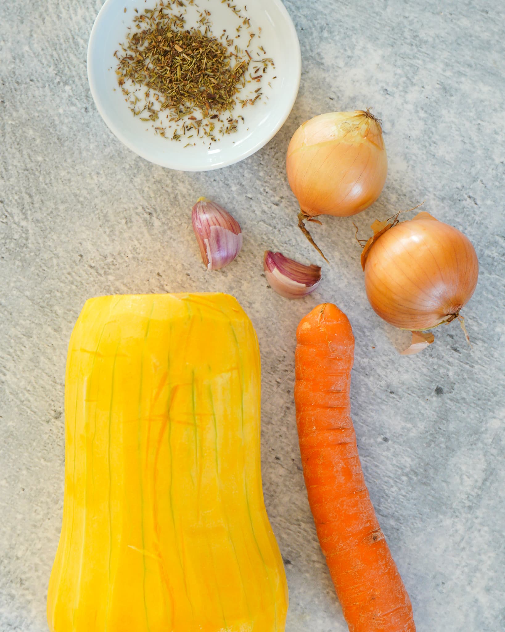 - 1/2 kleiner Butternut Kürbis oder Hokkaido