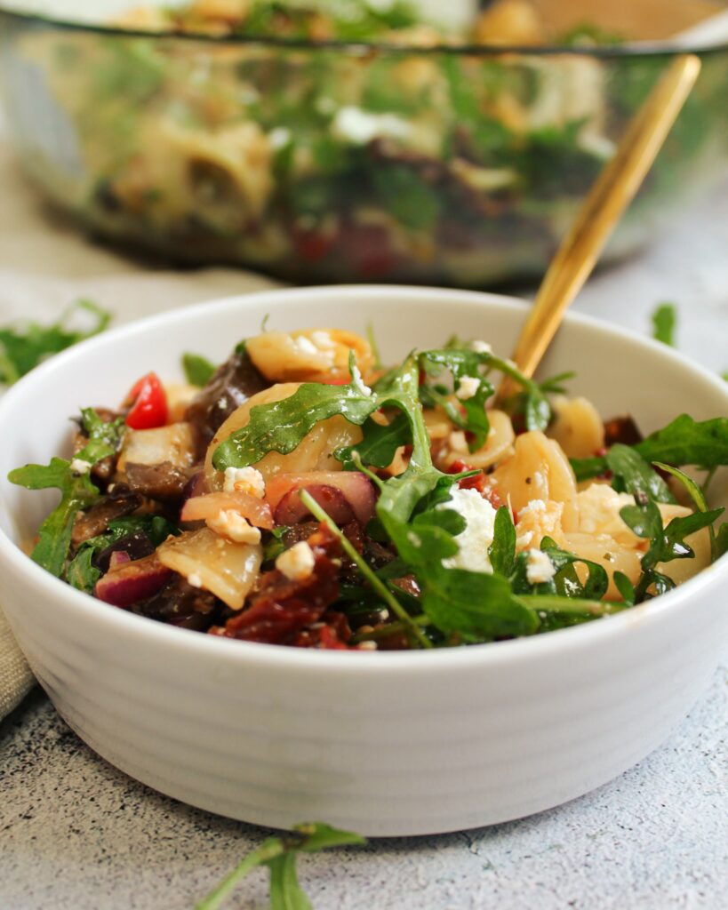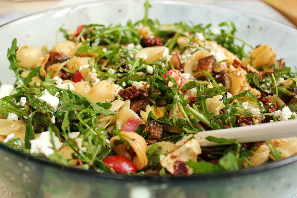 Mediterraner Nudelsalat mit getrockneten Tomaten und Rucola