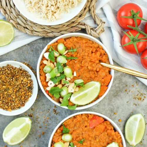 Veganes rotes Linsen Curry ist reich an Protein