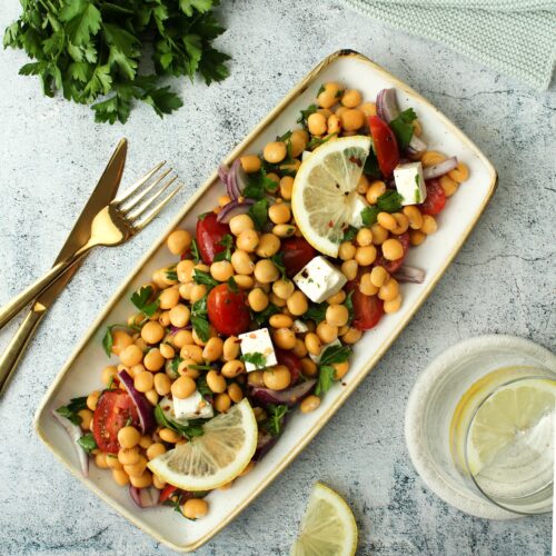 Mal Lust auf was neues? Dann habe ich hier was für dich. Ich zeige dir heute einen Salat mit Tomate, Feta, roten Zwiebeln und – Trommelwirbel – weißen Lupinen. Die kleinen Lupinen, die nicht nur optisch sehr an Kichererbsen erinnern, sind wahre Alleskönner. Regional, Eiweißreich und super vielseitig einsetzbar. Im Gegensatz zur Sojabohne, kommt die Lupine erst langsam in den Supermärkten an. Besonders vegane Ersatzprodukte wie Joghurt und Pflanzendrinks kann man mittlerweile auch auf Lupinenbasis finden. Du kannst die Lupinen aber auch ganz wunderbar unverarbeitet essen, so wie in meinem Tomaten-Feta-Salat mit Lupinen. Wenn du gerne noch mehr Rezepte mit Lupinen ausprobieren möchtest, dann kannst du Kichererbsen-Rezepte einfach abwandeln und die Kichererbsen durch Lupinen ersetzen. So kannst du z.B. mal Lupinen-Hummus oder Lupinen-Curry ausprobieren. Ich finde dieser Lupinen-Salat mit Tomaten ist der perfekte Einstieg in die Welt der Lupinen und du solltest ihn unbedingt mal nachmachen. 🙂