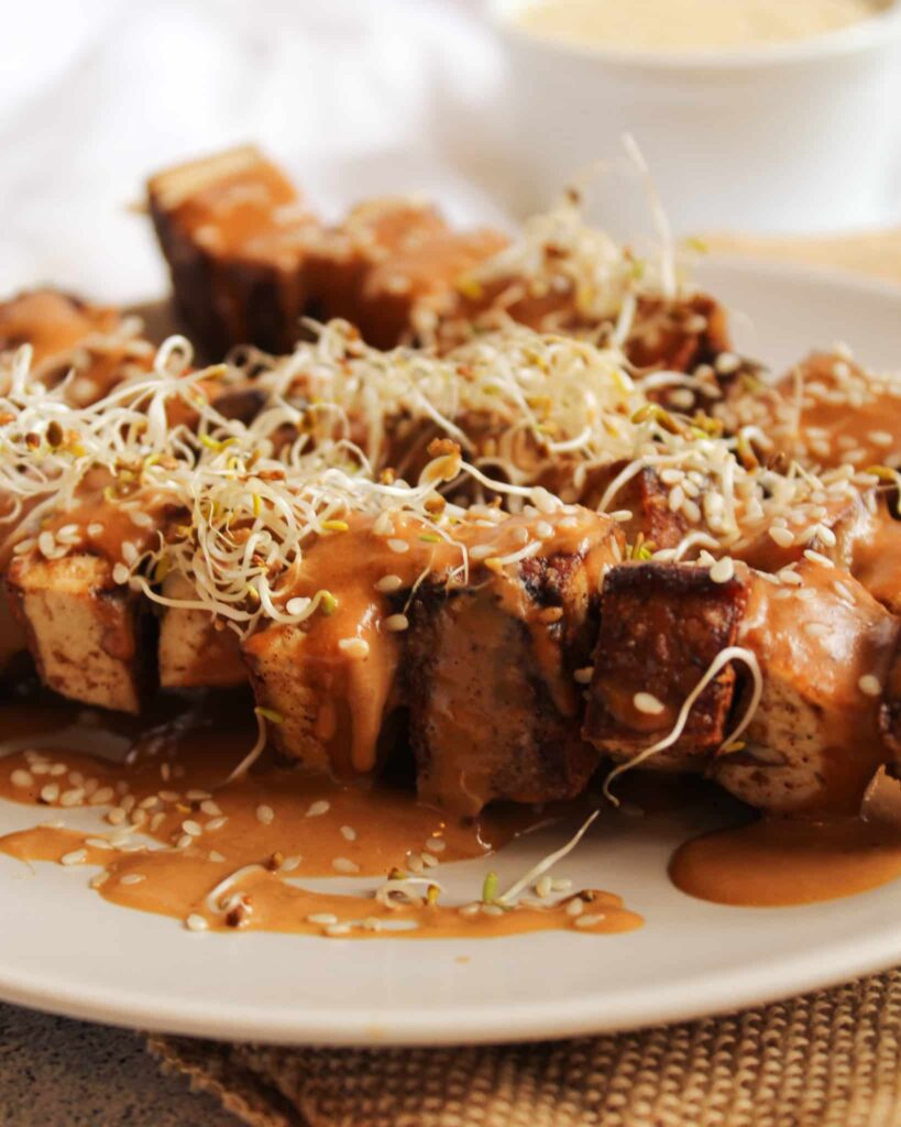 Diese knusprige Tofu Spieße werden Dein Herz erfreuen.