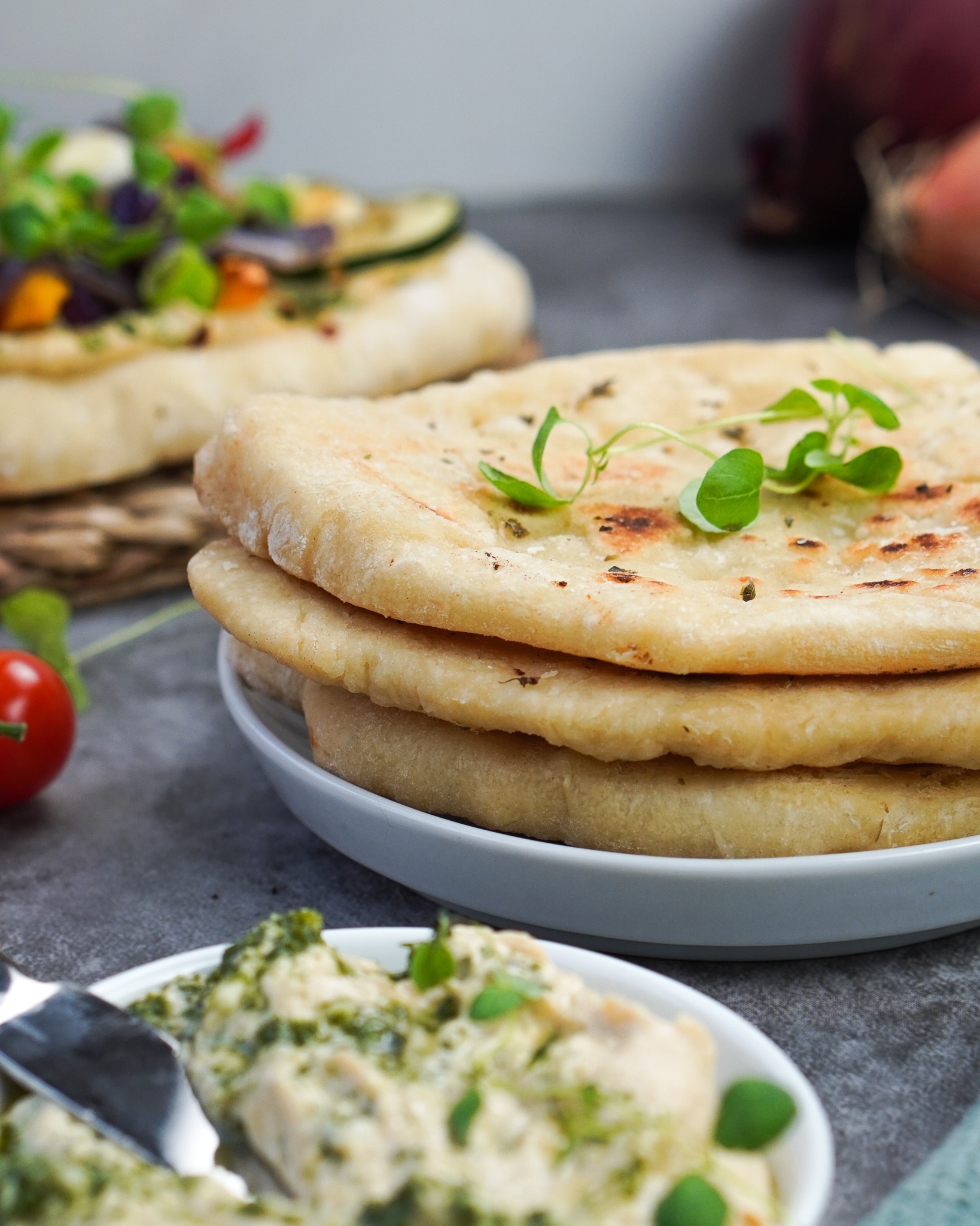 - Das Pita Brot kannst du entweder fertig aus dem Supermarkt kaufen und dann kurz in der Mikrowelle erwärmen oder selbst backen. Hier ist das Rezept dafür.