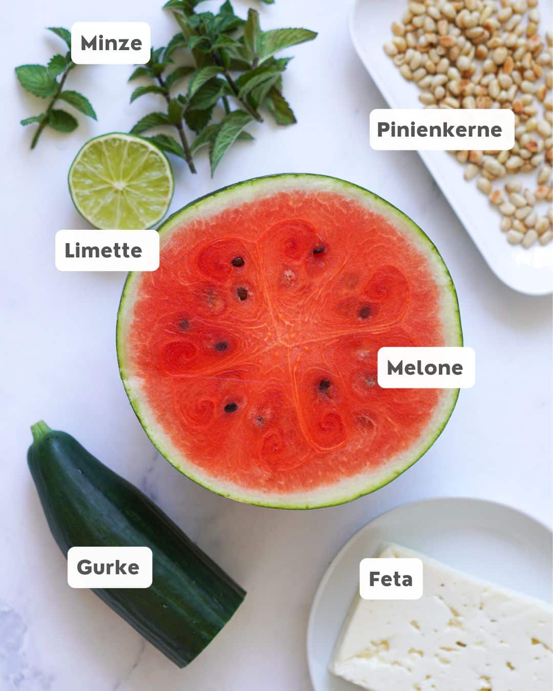 Diese Zutaten benötigst du für den Melonen Feta Salat ohne Öl