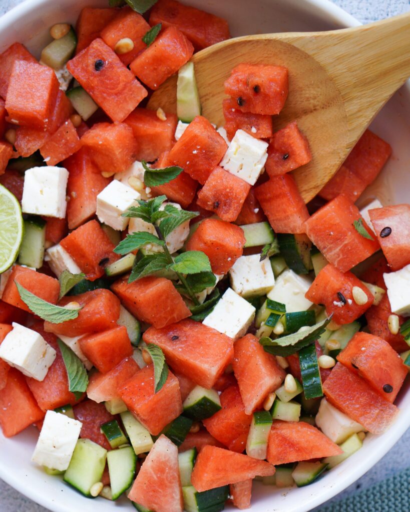 - Wassermelone: Die Hauptkomponente in diesem Salat