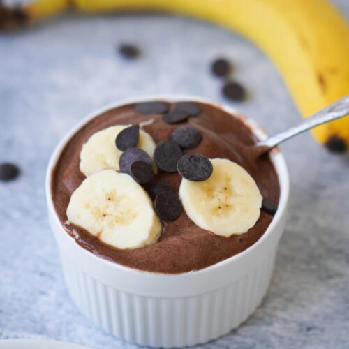 - Sie besteht nur aus 3 Zutaten: Banane, Kakao und etwas pflanzlicher Milch