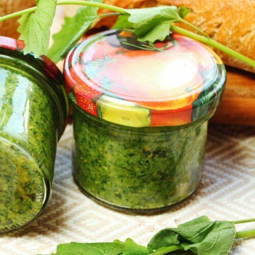 Dieses Pesto besteht nur aus Zutaten die du eigenständig im Wald sammeln kannst. Im Frühjahr wächst Knoblauchsrauke an Waldrändern oder Wiesen. Walnüsse lassen sich im Herbst sammeln und aufbewahren. Das Pesto eignet sich für Nudeln oder als Brotaufstrich.