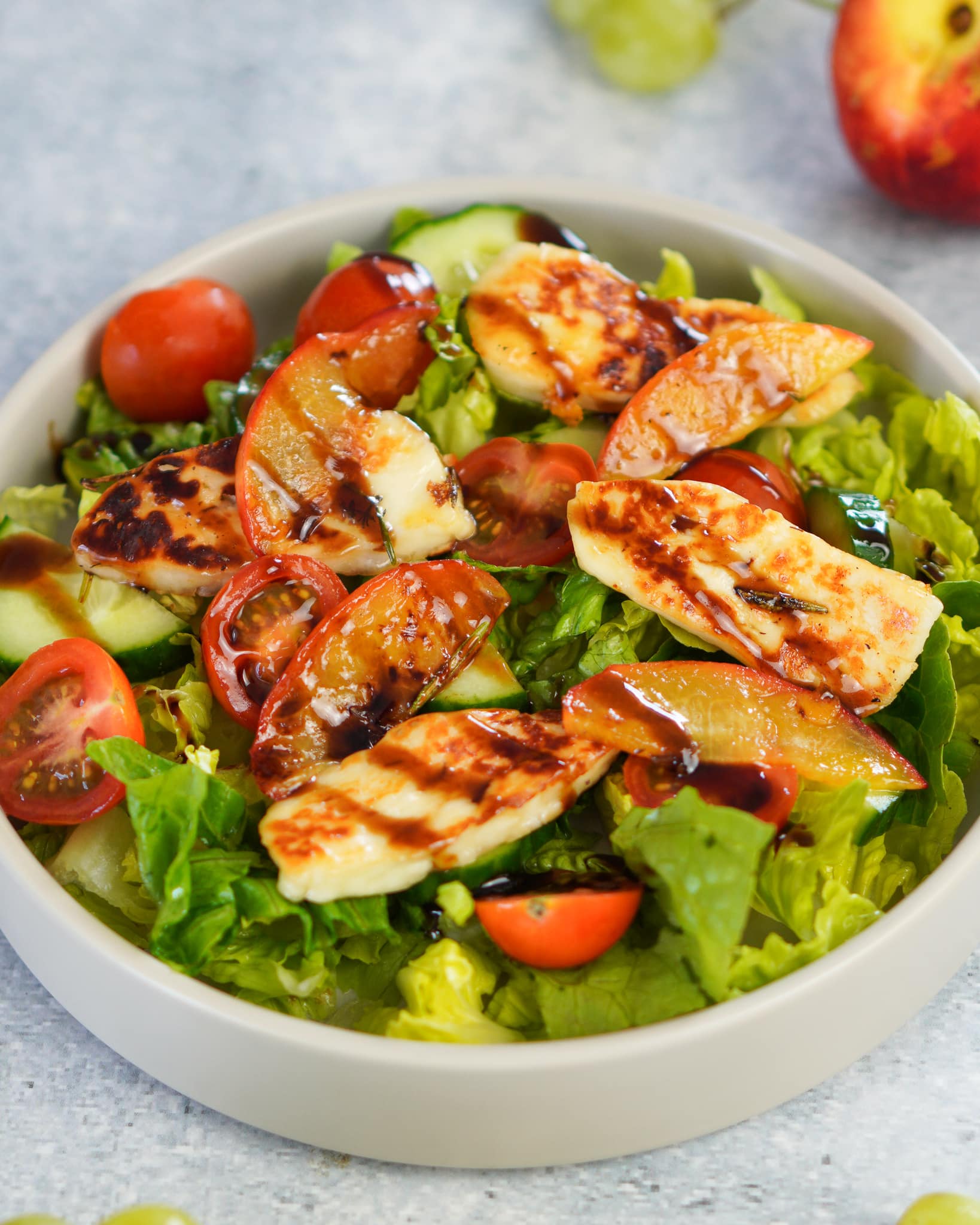 Halloumi Salat mit karamellisierter Nektarine