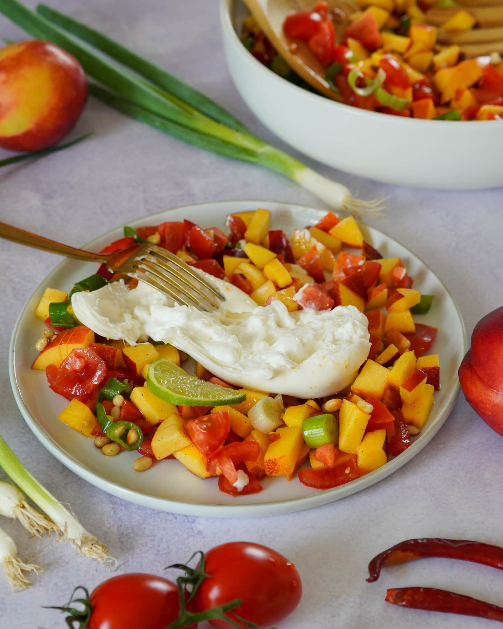 Der Pfirsich Salat mit Burrata ist perfekt …