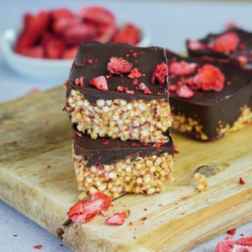 Bist du auf der Suche nach einem einfachen und gesunden Snack, der ganz ohne industrielle Zutaten auskommt? Meine gepufften Quinoa-Erdbeer-Schoko-Riegel sind die perfekte Lösung! Diese Riegel sind nicht nur kinderleicht zuzubereiten, sondern bestehen auch aus natürlichen und nahrhaften Zutaten. Mit gepufftem Quinoa, getrockneten Erdbeeren, cremigem Cashewmus und einer Schicht zart schmelzender zuckerfreier Schokolade bieten sie eine wunderbare Balance zwischen süß und gesund. Perfekt als Energiekick für zwischendurch oder als gesunde Nascherei für die ganze Familie – und das Beste daran: Du weißt genau, was drin ist! Entdecke jetzt mein Rezept und bereite deine eigenen leckeren und gesunden Riegel zu.