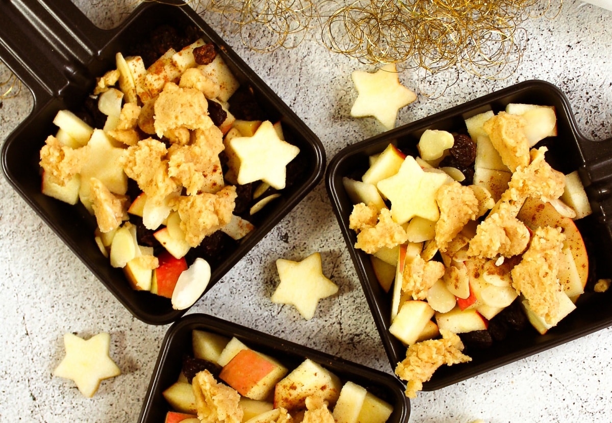 Dieser Dessert ist nicht nur ein Spielplausch für die Großen. Deine Kinder werden vom spielerischen Dessert kochen begeistert sein. Mit Stechformen kannst Du zusammen mit den Kinder lustige Formen aus dem Apfel hervorzaubern, die noch mehr Spass versprechen. Der lange Sonntagnachmittag an einem schneienden oder regnerischen Tag wird so schnell vergehen, und die leuchteten Augen der Kinder bleiben eine herrliche Erinnerung.