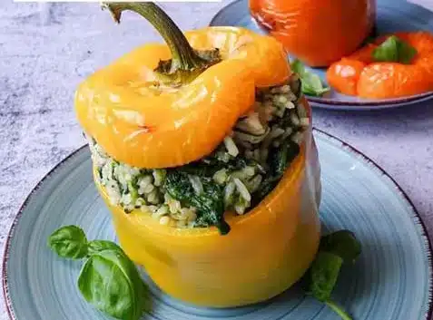 Gefüllte Paprika mit Reis und Spinat