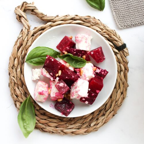 Für den rote Bete Salat mit Feta und Pinienkernen musst du nur vorgekochte rote Bete, Feta oder Schafskäse, Pinienkerne und ein paar Basilikumblätter vermischen und die Mischung noch nach deinem Geschmack abschmecken. Einfacher geht es gar nicht! Probier’ den leckeren Sommersalat unbedingt mal aus und schreib mir gerne hier oder bei Instagram, ob er dir geschmeckt hat! 🙂
