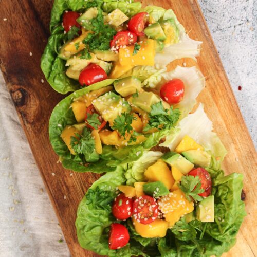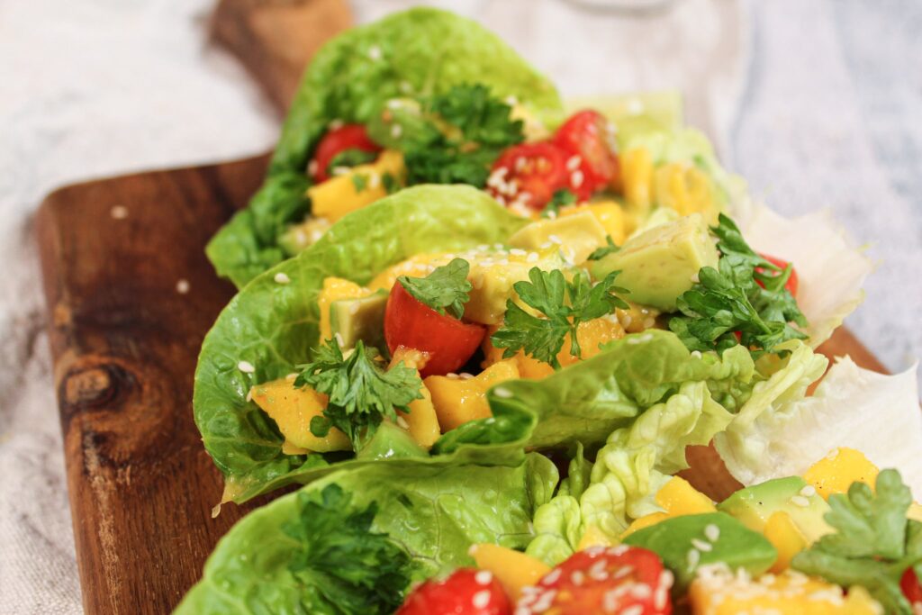 Ein Taco ist ein Fast-Food-Gericht aus Mexico, das sich auf der ganzen Welt großer Beliebtheit erfreut. Normalerweise besteht ein Taco aus einem kleinen Fladenbrot, Tortilla genannt, das aus Weizen oder Mais hergestellt wird. Bei diesem Rezept wird das Fladenbrot mit Salatblättern ersetzt. Somit sind sie sehr leicht und sogar roh-vegan. Besonders am Abend möchte man häufig auf eine kalorienarme und leichte Mahlzeit zurückgreifen. Dafür ist dieser Taco perfekt geeignet.