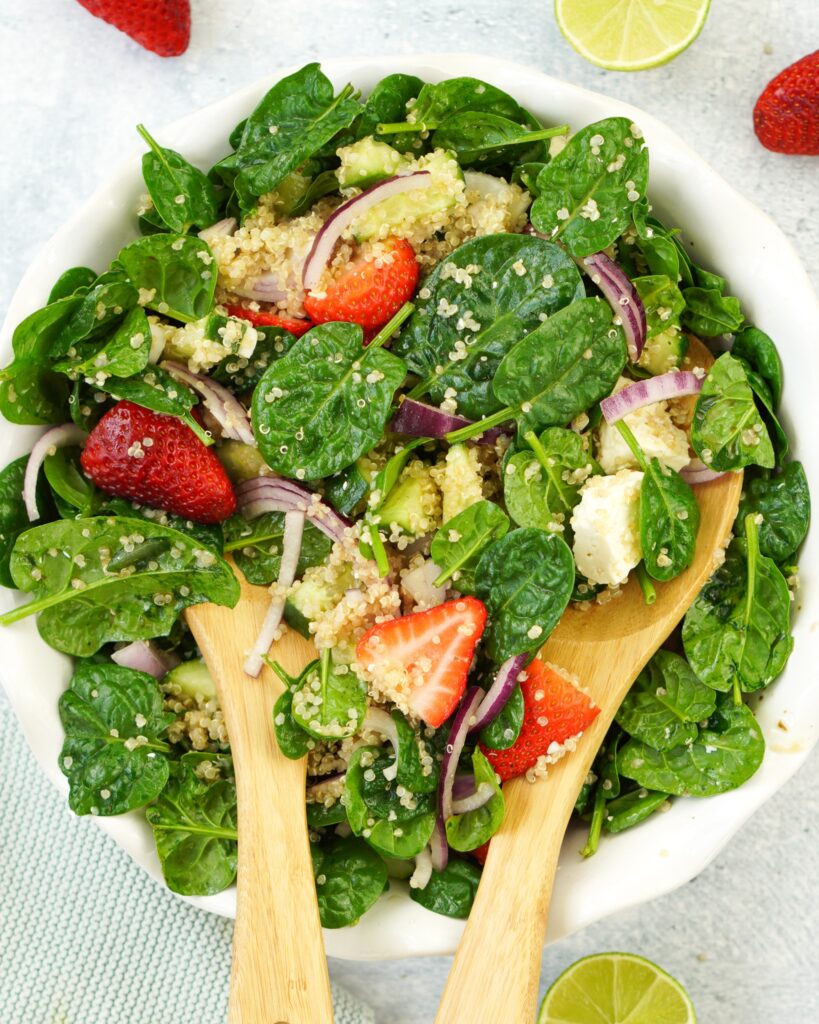 3. Spinatsalat mit Feta & Quinoa + einfaches Dressing – Jetzt zubereiten