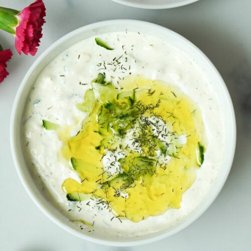 Zaziki bzw. Tsatsiki ist der perfekte würzige Dip für deinen Grillabend oder als Beilage zu Kartoffelgerichten. Du kannst dieses Rezept auch vegan oder ketogen zubereiten.