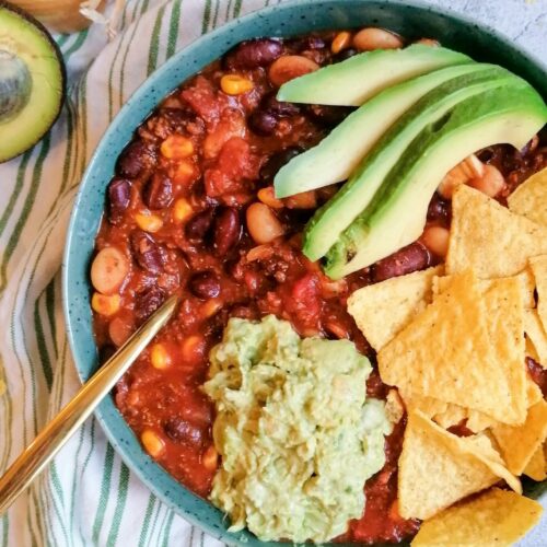 Du möchtest mal wieder richtig scharf essen? Probiere mein Chili con Carne in vegan. Bereite es schon am Vorabend vor und nimm es am nächsten Tag mit auf die Arbeit. Vorgekocht und am nächsten Tag wieder aufgewärmt schmeckt es einfach am besten.