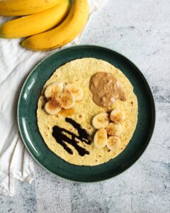 Süßer Wrap mit Banane, Erdnussmus und Ahornsirup