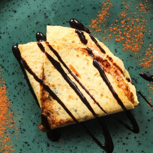 - Den fertig gefalteten Wrap bzw. Quesadilla in einer Pfanne mit etwas Öl ca. 3 Minuten von beiden Seiten knusprig anbraten.