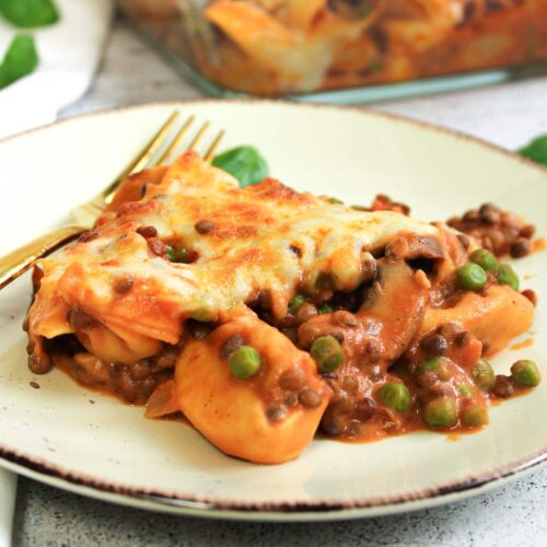 Überbackene Pasta ist ein wahrer Genuss. Diese vegetarische Variante mit Linsen steht den Tortellini al Forno aus dem Restaurant in nichts nach.