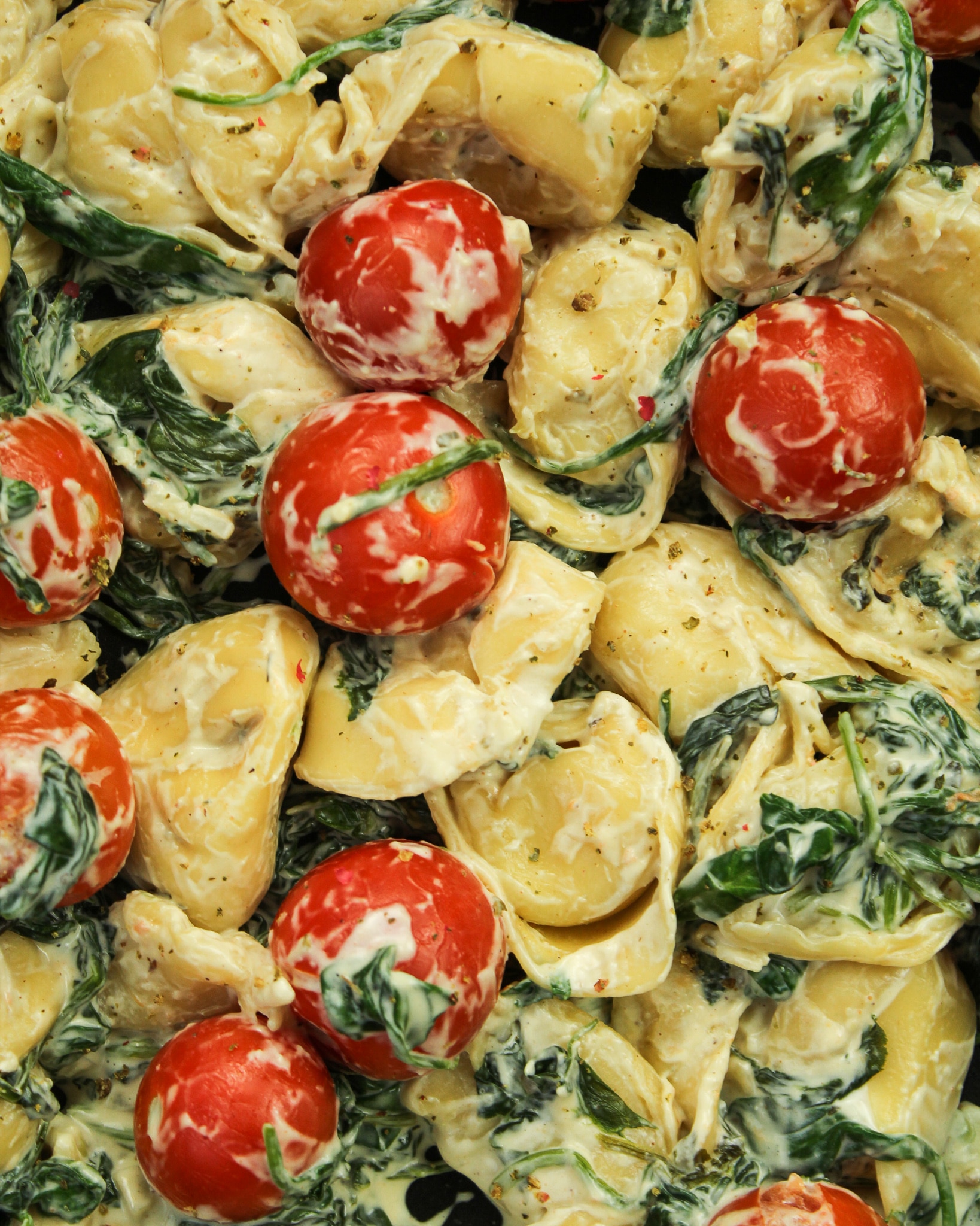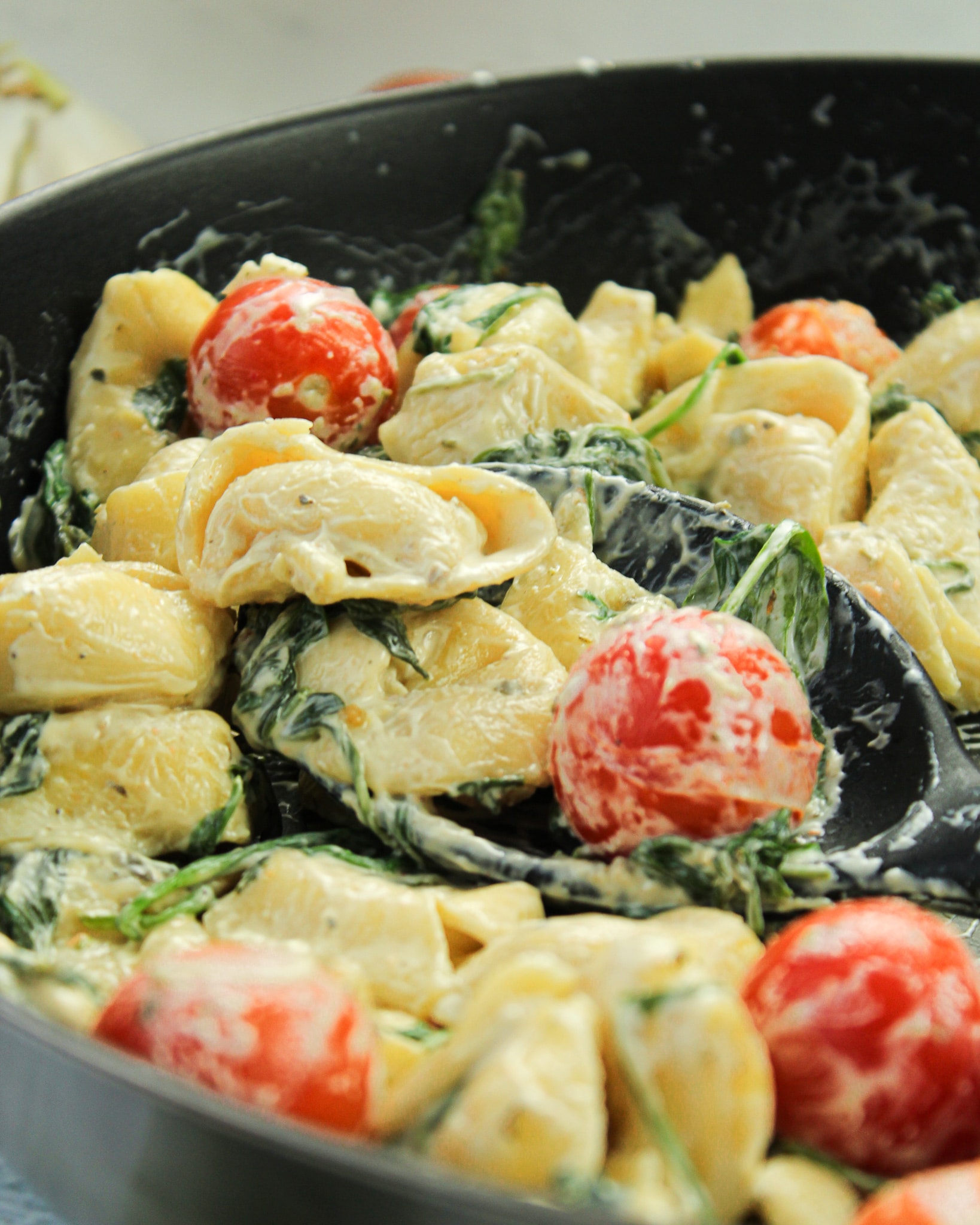 Tortellini Pfanne mit Spinat und Frischkäse – vegetarisch
